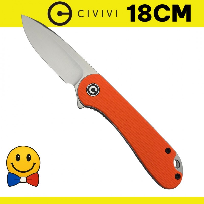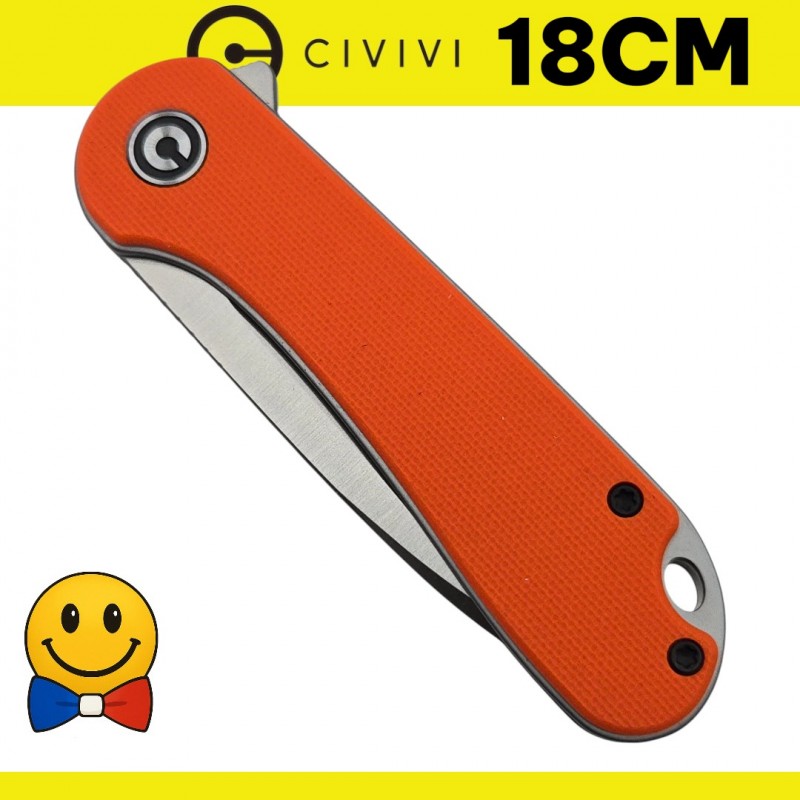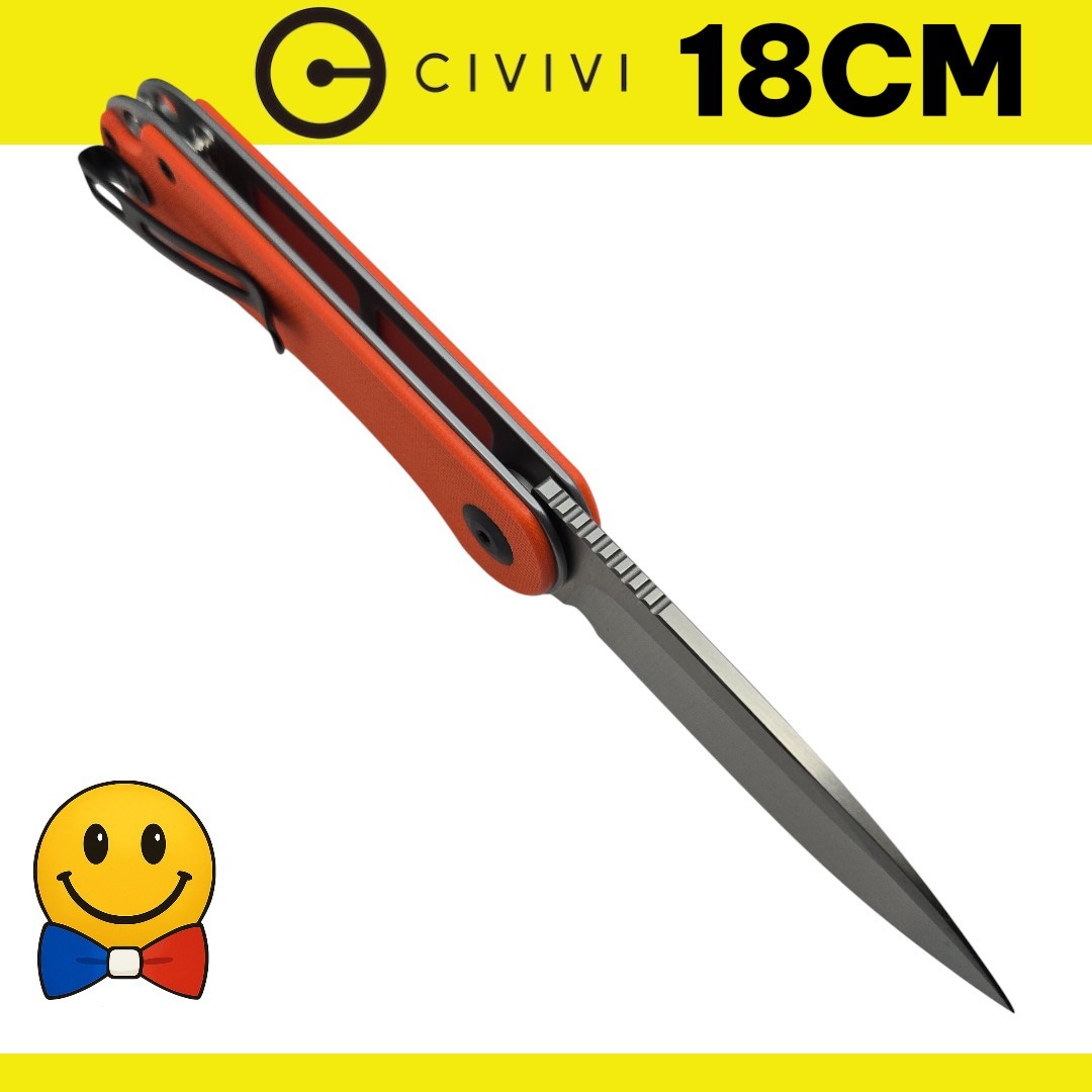 Le CIVIVI Elementum (modèle C907R) est l’un des couteaux pliants les plus emblématiques de la marque. Simple, fiable et parfaitement équilibré, il allie une lame en acier D2 au tranchant redoutable à un manche en G10 orange qui assure une excellente prise en main. Un couteau polyvalent, élégant et terriblement efficace pour un usage quotidien.
