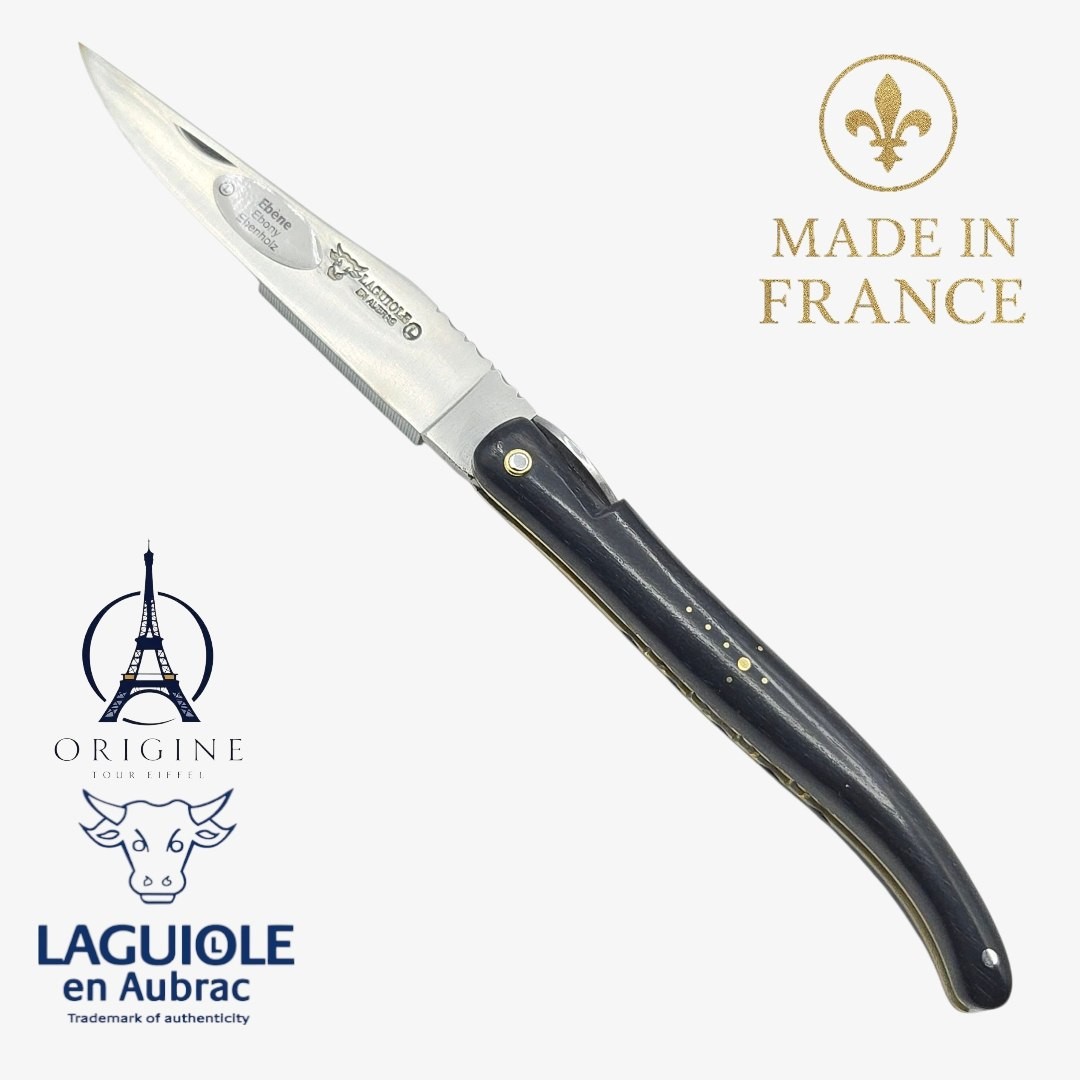 Parce qu’il symbolise la profondeur, la longévité et la noblesse. C’est un bois sombre, précieux, prisé en coutellerie pour sa stabilité et son esthétique intemporelle.