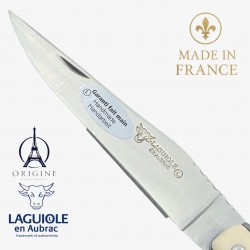 C’est un matériau synthétique noble, durable, utilisé en coutellerie pour remplacer l’ivoire ou l’os. Il offre une belle teinte blanche naturelle.
