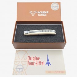 Ce Laguiole d’exception n’est pas un simple couteau : c’est un hommage à la Dame de fer, à la France, à l’ingéniosité et à l’élégance à la française. Ce modèle Tour Eiffel, intégralement fabriqué en France, s’habille d’un manche immaculé en Elforyn blanc, une matière noble et lumineuse qui évoque l’ivoire sans en être. Son contraste avec la lame inoxydable Sandvik 12C27 lui confère un style épuré, raffiné, presque solennel.
