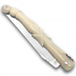 Derrière cette beauté plastique se cache un instrument de coupe redoutable. La lame de 10 cm est forgée dans le célèbre acier inoxydable Sandvik 12C27, garantissant un tranchant rasoir et une résistance à toute épreuve. Le mécanisme à cran forcé assure une fermeture ferme et sécurisante, caractéristique des Laguiole de haute manufacture.
