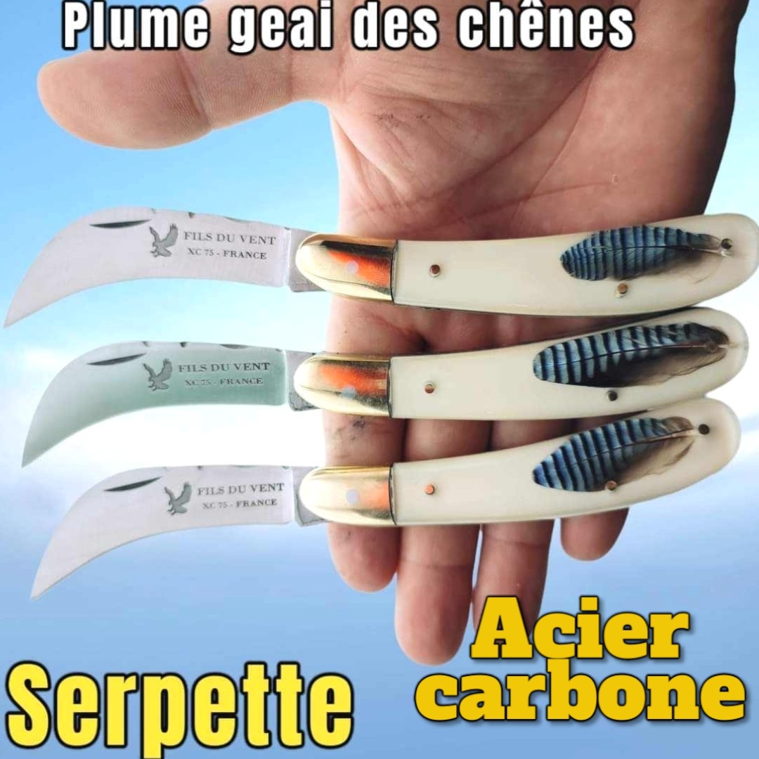 Lame en véritable acier carbone XC75 de 7cm, c'est l'acier des couteaux de nos grands père, la lame s'oxyde et doit être essuyée après avoir été mouillée sinon elle rouille.
